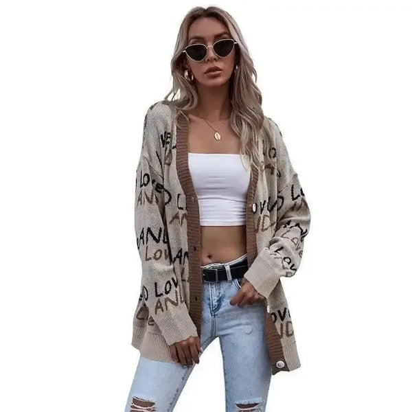 V-Ausschnitt Letter Lose Europäisch Und Amerikanisch Langärmlig