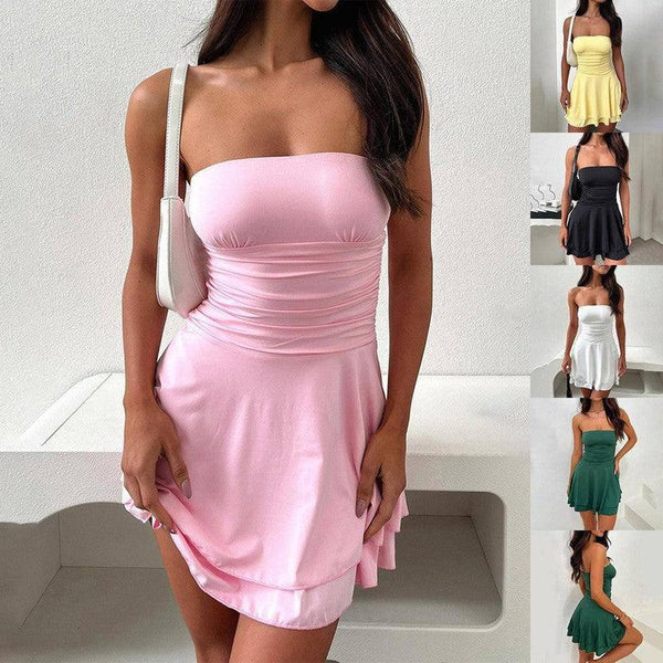 Y2K Tube-Top Kurzes Kleid Sommer Plissee Enge Kleider